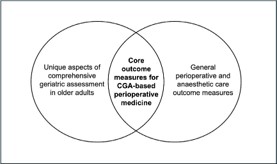 This scoping review describes outcome measures used by studies evaluating the efficacy of CGA-based perioperative care compared with standard surgical care, maps these outcome measures to perioperative medicine core domains, and forms the first step in the generation of a COS for ongoing evaluation of CGA-based perioperative services. We aim to define a COS that can be used to describe the unique needs of the older surgical population, the holistic nature of CGA and the implementation of CGA-based perioperative services at scale (Figure 1).