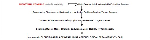 Tested is the idea that the presence of adequate vitamin C has a distinct bearing on directing potential cartilage healing opportunities in osteoarthritis, as well as the pain experience and in shoulder osteoarthritis may influence the healing potential of the surrounding soft tissues and joint stabilizers, but fail to preserve the older adult shoulder osteoarthritis if insufficient as outlined in Figure 1.