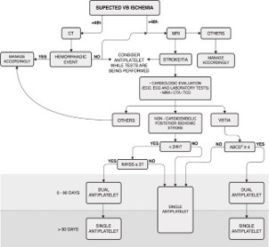 MRI: Cranial Diffusion-Weighted Magnetic Resonance; VB: Vertebrobasilar; CT: Cranial Computed Tomography; ECO: Echocardiography; ECG: Electrocardiogram; MRA: Cranial and Cervical Magnetic Resonance Angiography; CTA: Cranial and Cervical Computed Tomography; TCD: Transcranial Doppler Ultrasonography; VBTIA: Vertebrobasilar Transient Ischemic Attack; NIHSS: National Institutes of Health Stroke Scale.