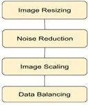 The figure 5 shows the data pre-processing steps. The AD dataset is processed by slicing, image scaling, noise reduction, histogram equalization, and low-pass alpha-trimmed filtering. The contrast of an image is improved using the histogram equalization. To acquire the necessary image size (128×128), resizing is done. To improve the model’s efficiency, these are further downscaled [4]. Subsequently, downscaling is carried out to downscale the dimensionality of the data and increases the feasibility of training the DL algorithm on it. Using GANs (Generative Adversarial Networks), the model’s prediction of the imbalanced data is made more accurate and also limits conventional methods such as overfitting [4].