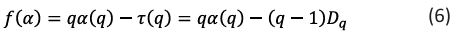 The symbol f (α) represents the fractal dimension of the fractal units of a particular size, and α (q) is the related singularity exponent. It is possible to apply warping filters to the image and utilize them to highlight subtle characteristics. The symbol (q) represents a set of exponents that make up these warp filters.