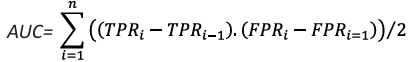 TRPi represents the ith True Positive Rate and FPRi represents the ith False Positive Rate.